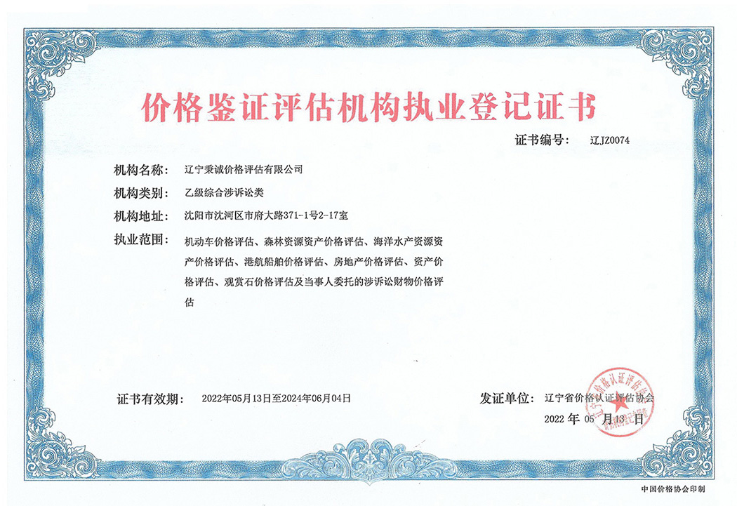 辽宁秉诚价格评估有限公司于2006年8月4日正式成立,并于2007年取得乙级综合涉诉讼类资质,有健全的内部管理制度,良好的社会信誉。在执业过程中不断进取,始终秉承“专业、创新、探索、务实、高效”的公司理念和工作方针,执业十几年以来无任何违法执业行为。